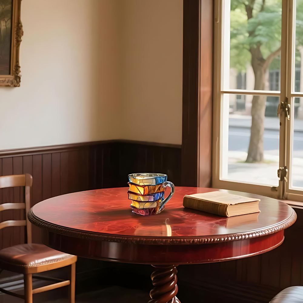 Erleben Sie den Charme dieser handgefertigten Glastasse, die wie ein Stapel bunter Bücher gestaltet ist. Perfekt für Kaffee, Tee oder heiße Schokolade, vereint sie Kunst und Funktionalität in einem einzigartigen Stück. Jede Tasse fängt das Licht wunderschön ein und zeigt satte Farben sowie filigrane Details, die Ihre Liebe zu Büchern bei jedem Schluck zum Leben erwecken.