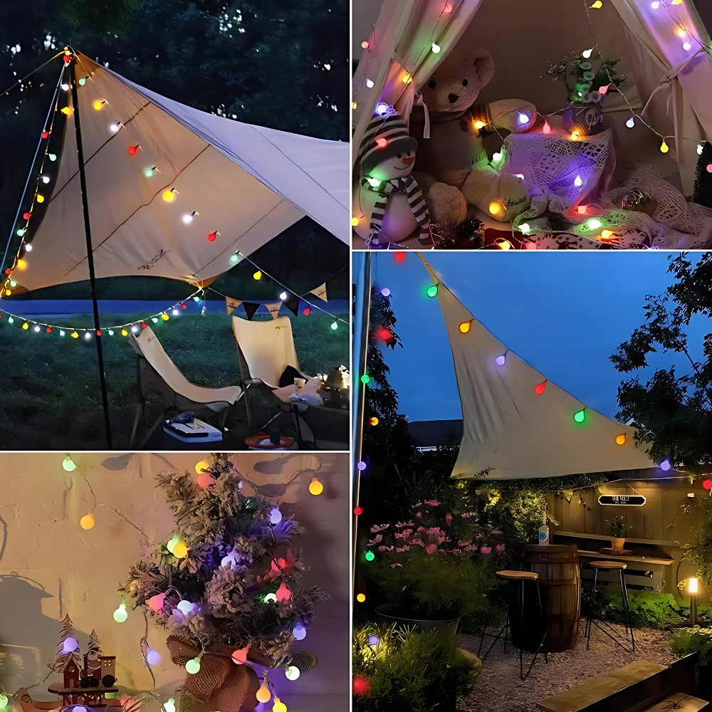 - Colores vibrantes LED: Las luces multicolores añaden un brillo festivo a cualquier celebración al aire libre o ambiente acogedor por la noche.