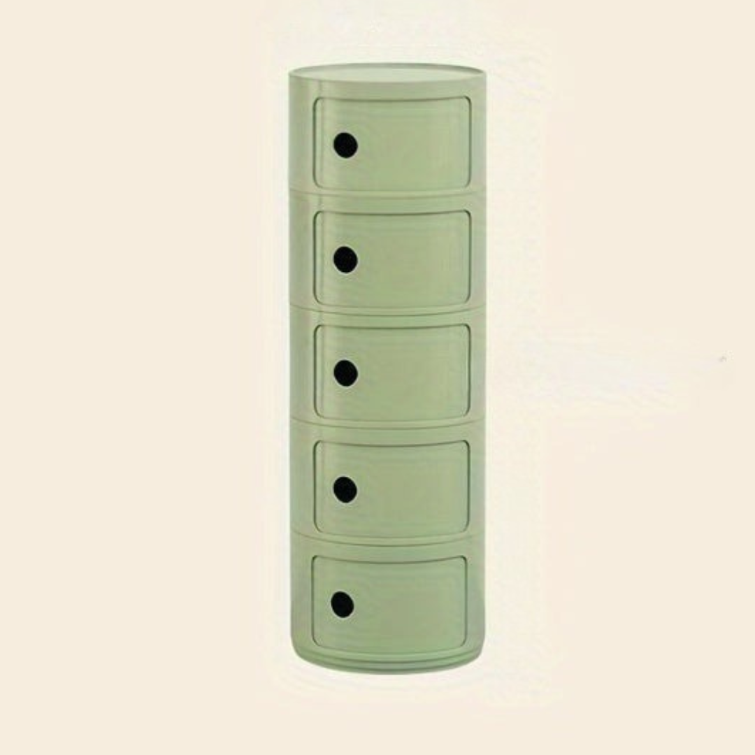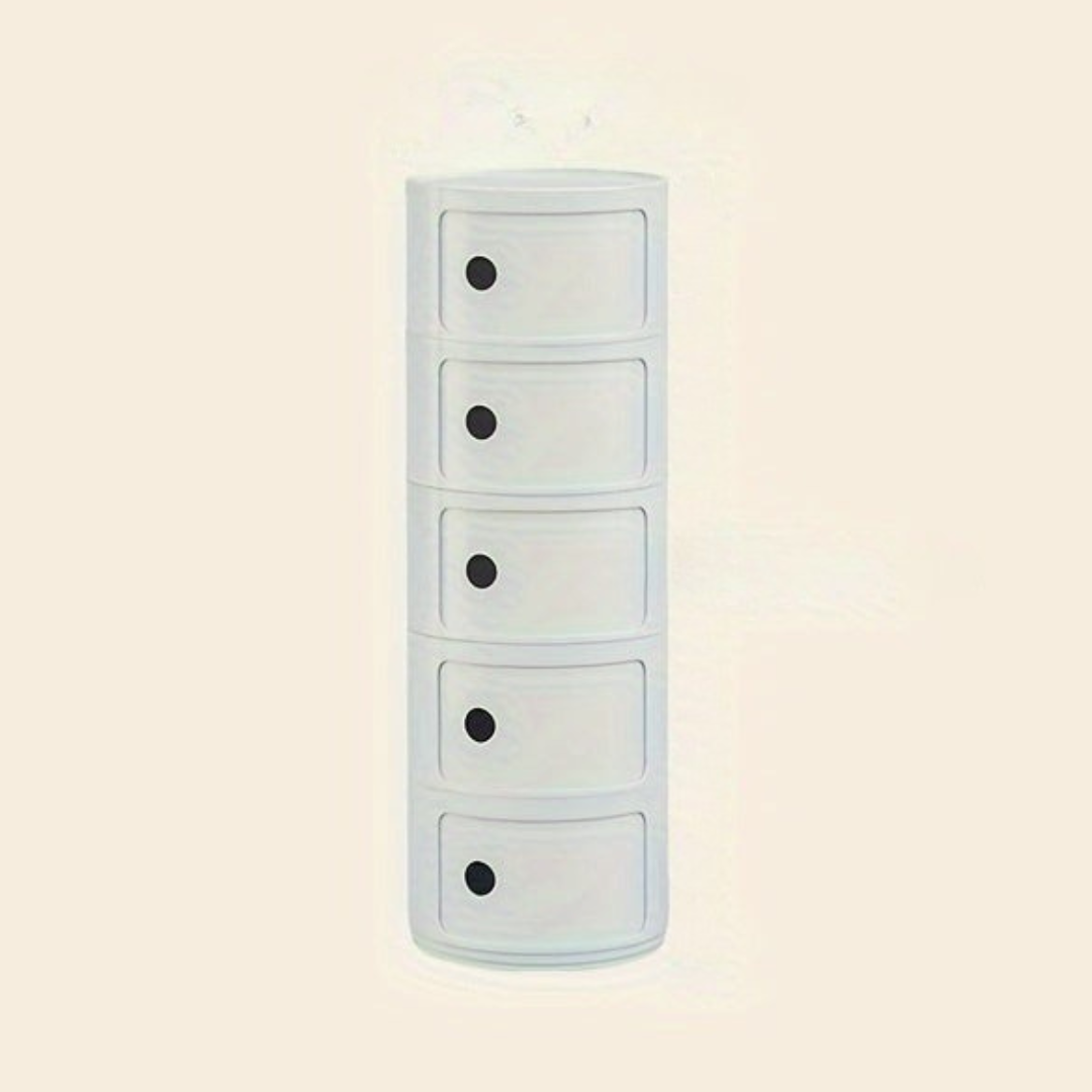 Gardez votre maison propre et élégante avec cette table de chevet compacte dotée de tiroirs de rangement en plastique élégants. Avec sa forme ronde et ses compartiments superposés, cette unité de rangement pour chambre moderne est parfaite pour organiser vos essentiels. Qu'elle soit placée dans une chambre, un salon ou un couloir, elle ajoute un look épuré et minimaliste tout en vous aidant à économiser de l'espace.