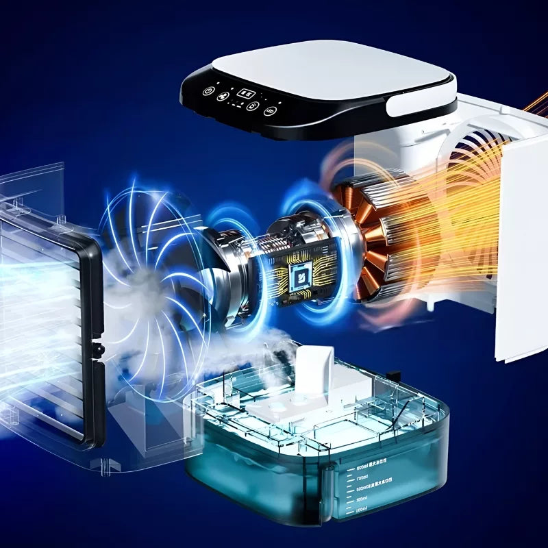 Combattez la chaleur avec ce refroidisseur d'air portable et humidificateur. Parfait pour les chambres, bureaux et espaces de travail, il rafraîchit et humidifie l'air, vous aidant à rester confortable et productif toute la journée. Avec un ventilateur silencieux et une veilleuse intégrée, il est idéal pour le travail comme pour la détente.