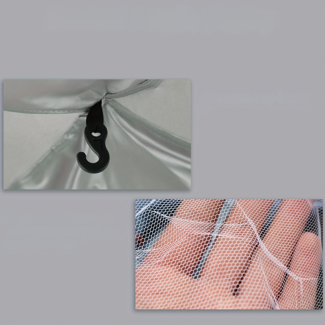 Ten nowoczesny namiot kempingowy został zaprojektowany z myślą o komforcie i ochronie podczas wiosennych przygód. Wykonany z trwałej tkaniny poliamidowej, lekkiej ramy z włókna szklanego oraz z bezpiecznym zamknięciem na zamek błyskawiczny, jest idealny na pikniki, wędrówki lub pobyty w ogrodzie. Panele z siatki zapewniają przepływ świeżego powietrza, jednocześnie chroniąc przed słońcem. Jego elegancki jasnoszary design dodaje stylowego akcentu Twojemu wyposażeniu.