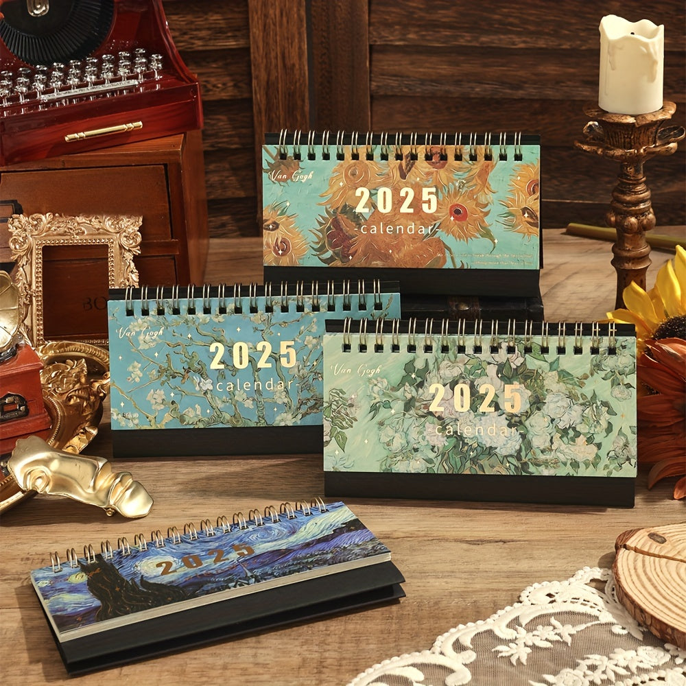 Ten elegancki kalendarz biurkowy łączy piękne vintage'owe dzieła sztuki z praktycznym miesięcznym planowaniem. Wykonany z wysokiej jakości papieru, jest idealny do domowego biura, biurka do nauki lub miejsca pracy. Jego kompaktowy design pomaga utrzymać porządek, dodając jednocześnie artystycznego uroku Twojej codziennej rutynie.