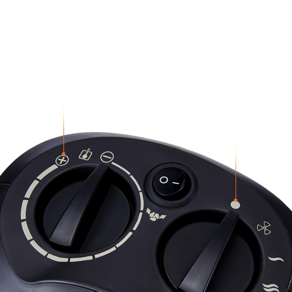 - Regulowany termostat: Wybierz spośród trybów wysoki (1500W), niski (900W) lub tylko wentylator dla spersonalizowanej kontroli temperatury.