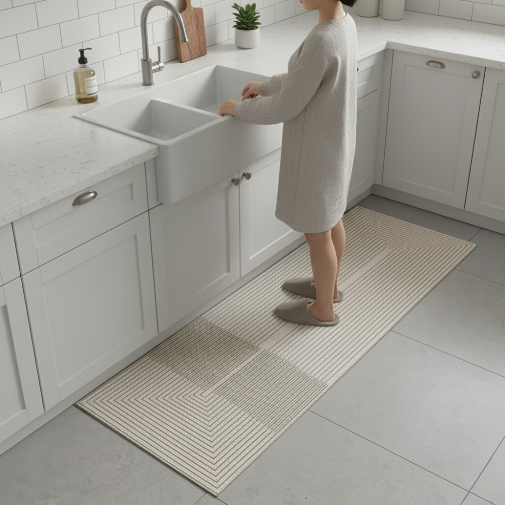 Utrzymaj swój dom suchy i bezpieczny dzięki tej macie kuchennej stworzonej do intensywnych przestrzeni. Miękka powierzchnia chłonnego dywanu podłogowego szybko wchłania rozlane płyny, podczas gdy antypoślizgowy gumowy spód zapewnia stabilność na każdej powierzchni. Idealna jako pralna mata łazienkowa lub dywanik kuchenny, oferuje nowoczesny styl, szybkie schnięcie i przytulne uczucie pod stopami w kuchni, przedpokoju lub pralni.