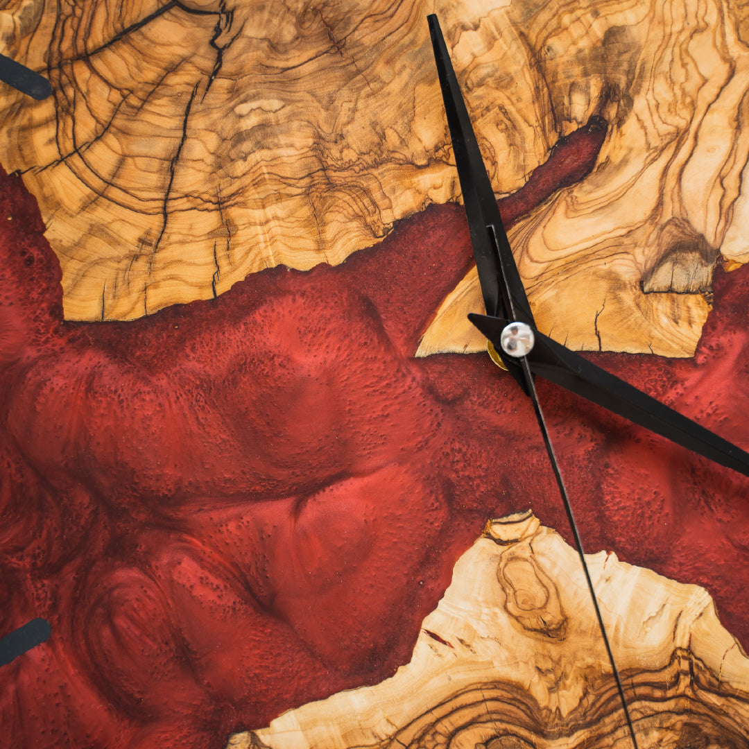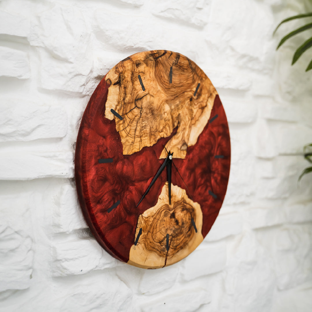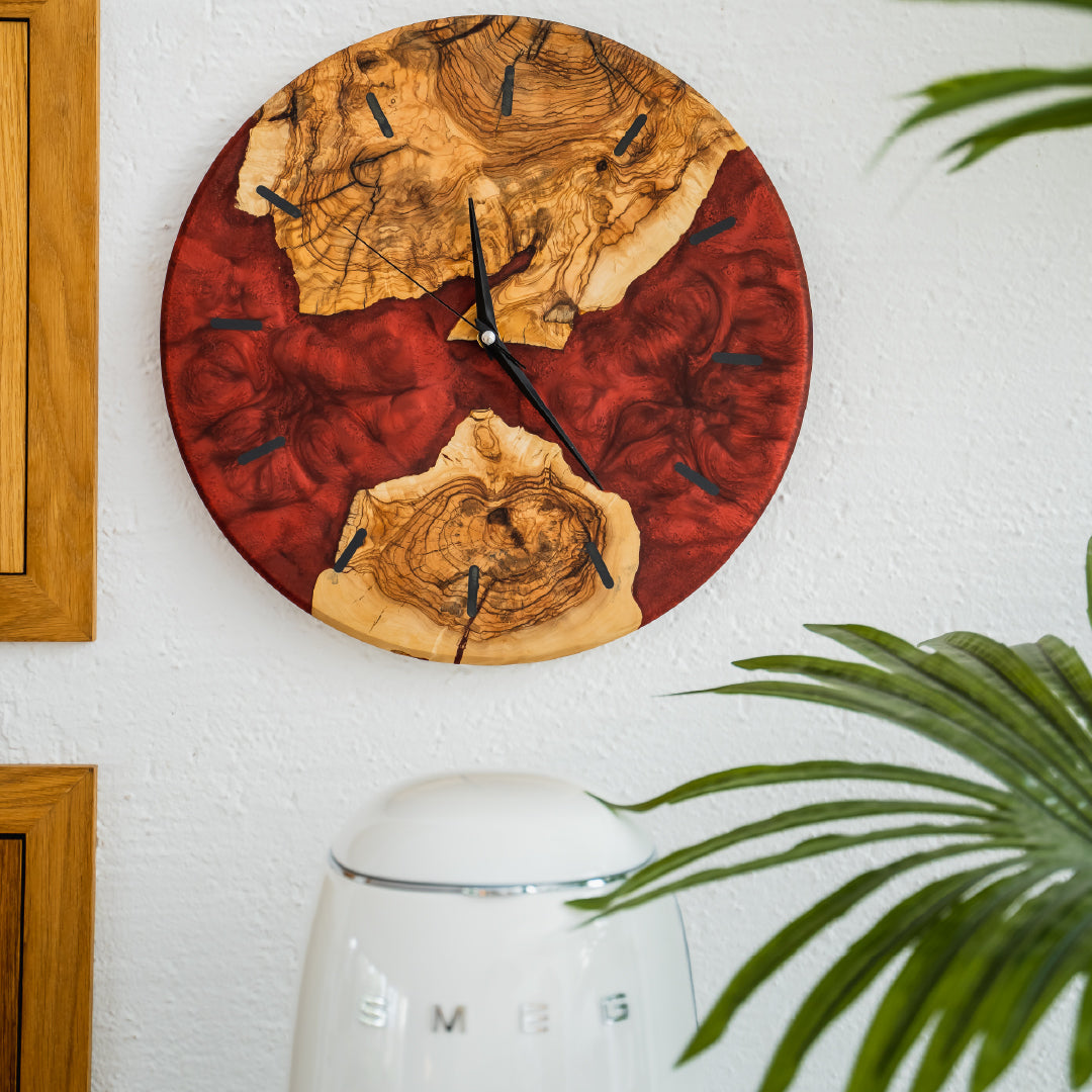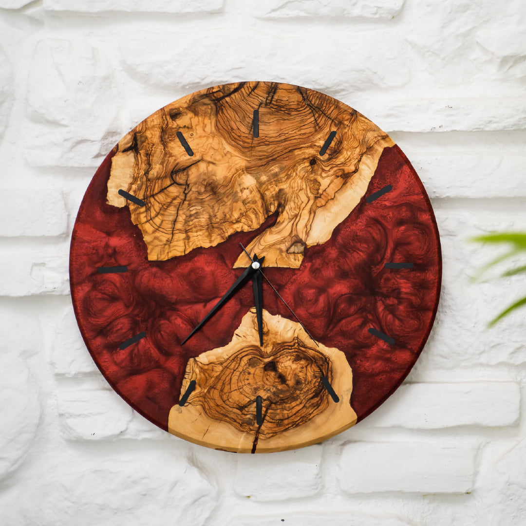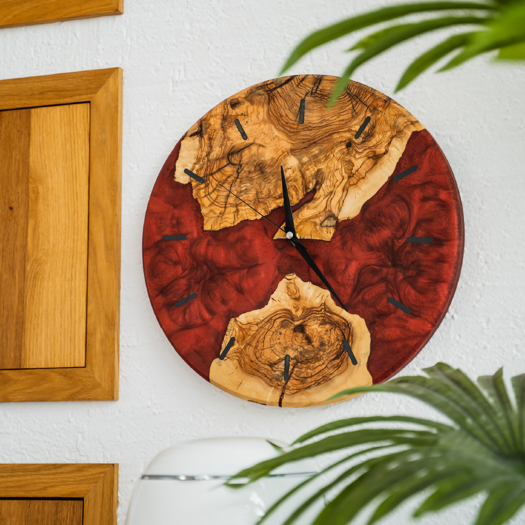 Ulepsz wystrój swojego domu tym oszałamiającym rustykalnym zegarem ściennym, pięknie wykonanym ręcznie z naturalnego drewna oliwnego i wysokiej jakości żywicy. Każdy egzemplarz jest unikalny, oferując niepowtarzalny design łączący naturalne tekstury z nowoczesną sztuką. Idealny do dodania ciepła i wyrafinowania do salonu, sypialni lub biura, ten drewniano-żywiczny zegar ścienny jest zarówno funkcjonalny, jak i dekoracyjny.