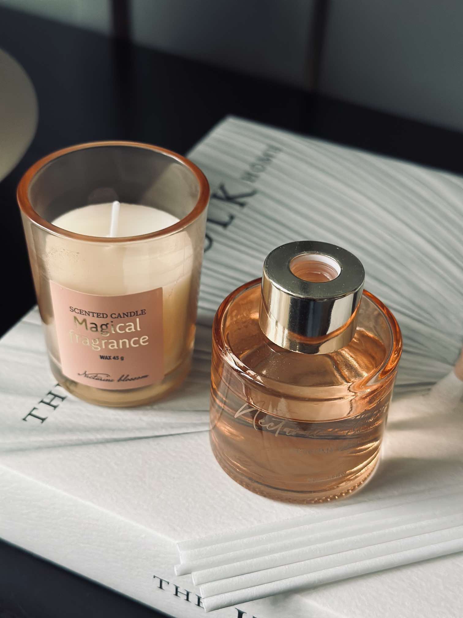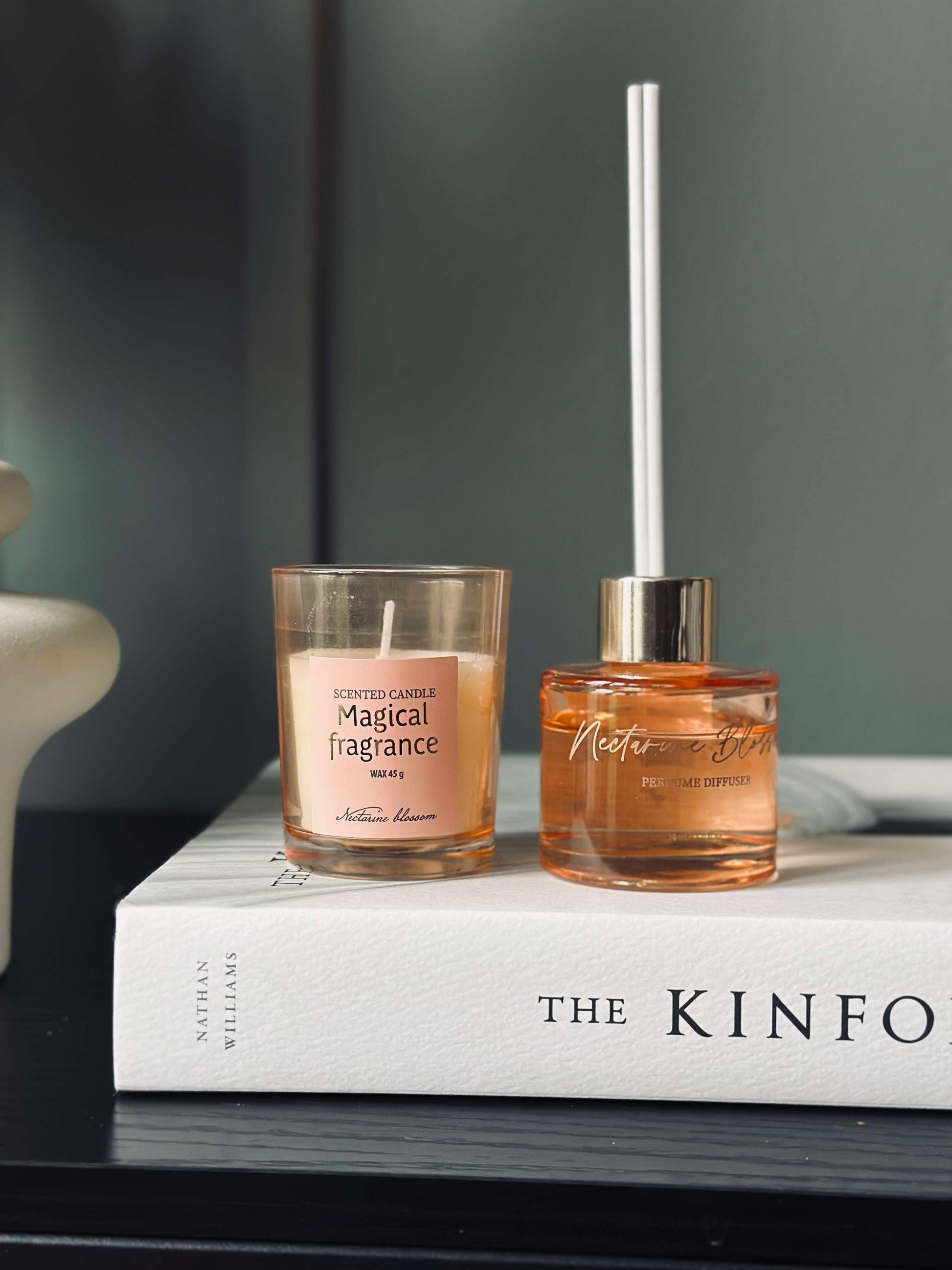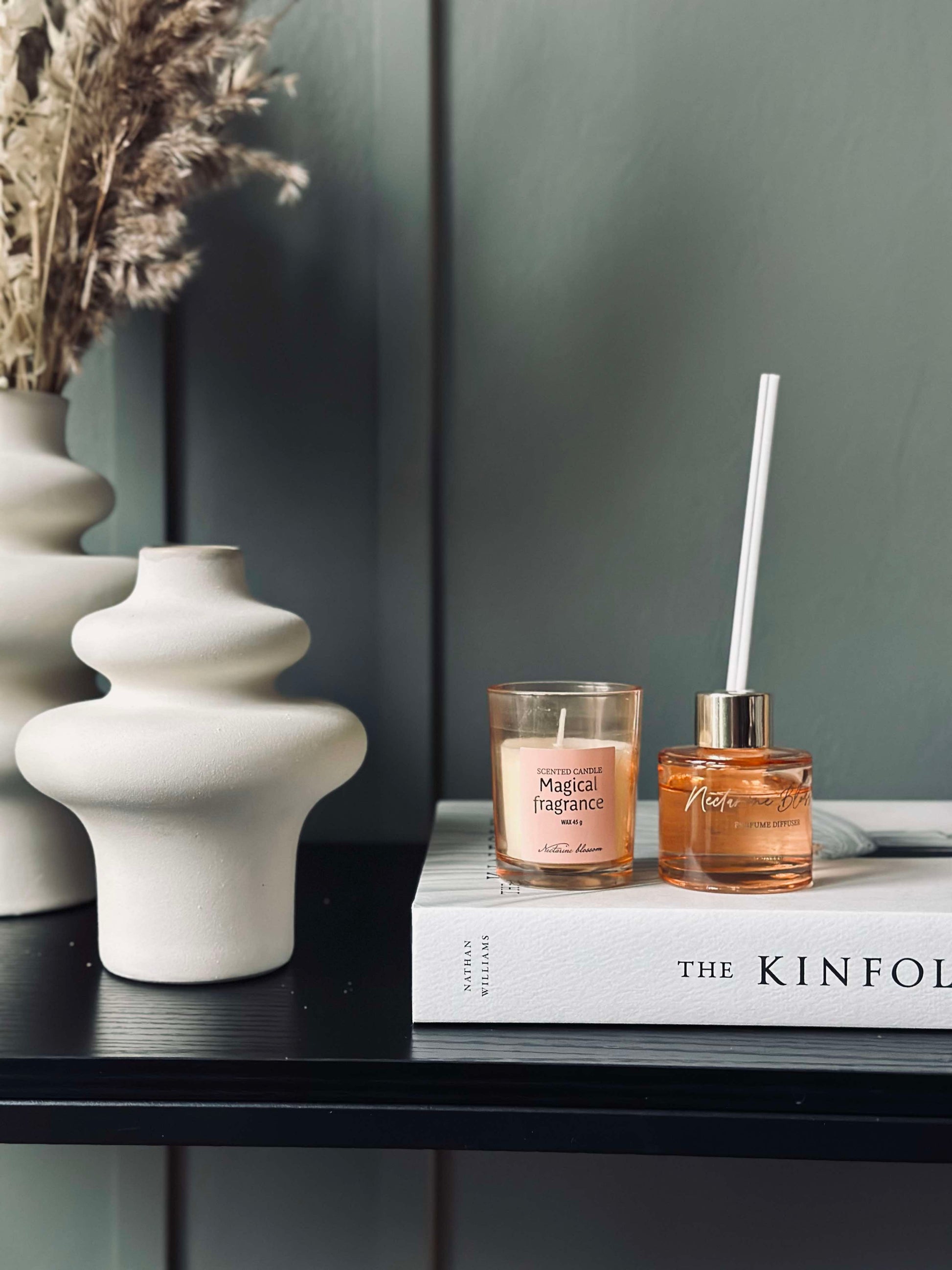 Wprowadź ciepło i zapach do swojej przestrzeni dzięki temu zestawowi prezentowemu z woskami zapachowymi, zawierającemu świecę zapachową oraz dyfuzor z patyczkami. Zaprojektowany, aby stworzyć relaksującą atmosferę, połączenie światła świecy i długotrwałego zapachu do domu sprawia, że jest idealny na chwile dbania o siebie lub jako przemyślany prezent. Kompaktowy rozmiar pasuje do każdego pomieszczenia i pięknie komponuje się z każdym wystrojem.