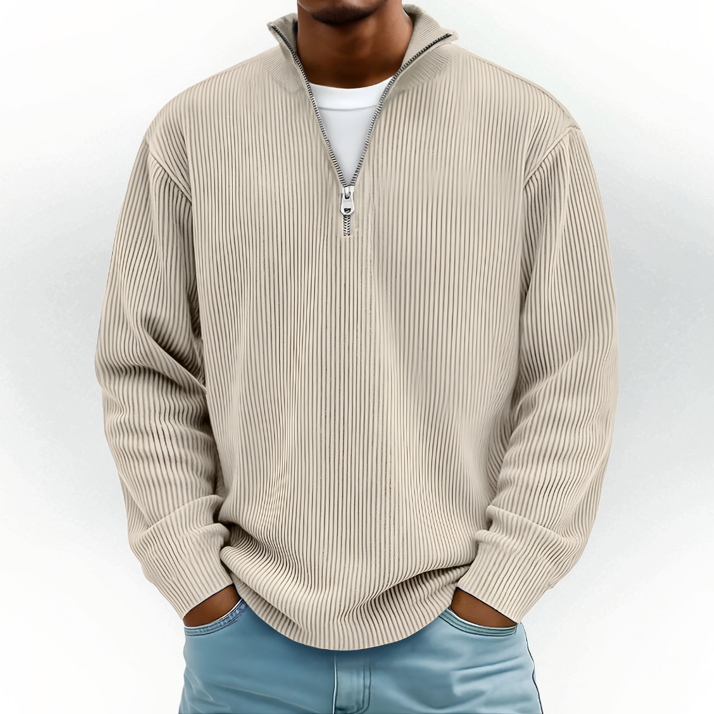Stay warm and look refined with this men’s oversized half zip knitted sweater. Made from a soft, breathable knit, this warm jumper combines relaxed comfort and timeless design. Its half-zip collar adds a modern touch, letting you style it open or closed. Perfect for layering, it’s ideal for cool days, casual outings, or cozy evenings indoors.